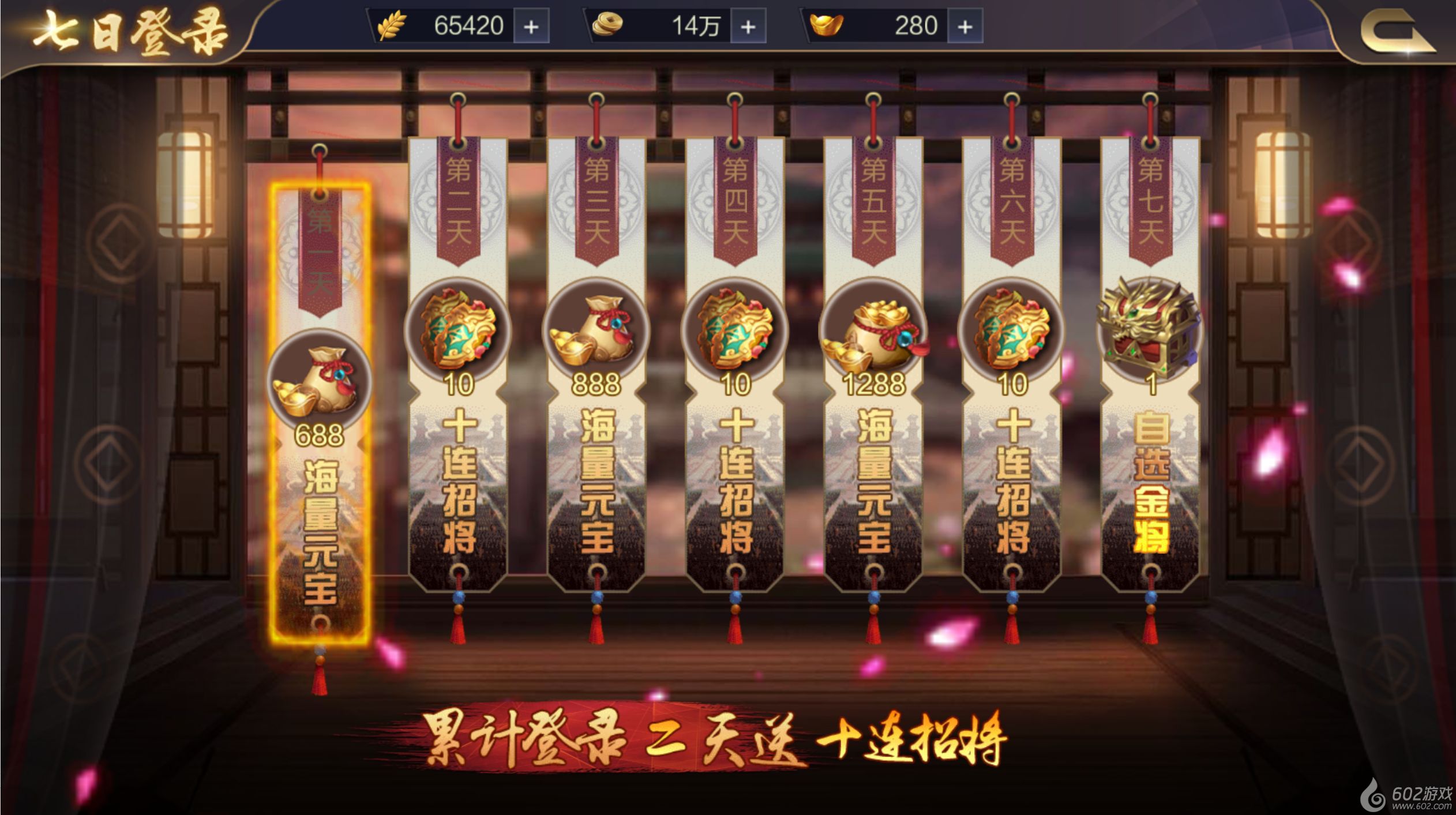 二、连登送十连,首周送金将